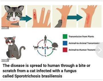 یک بیماری قارچی در حال گسترشه که از گاز گرفتن گربه بوجود میاد و می‌تونه به ریه و استخوان و مفاصل و سیستم ایمنی مرکزی بدن هم اسیب وارد کند.